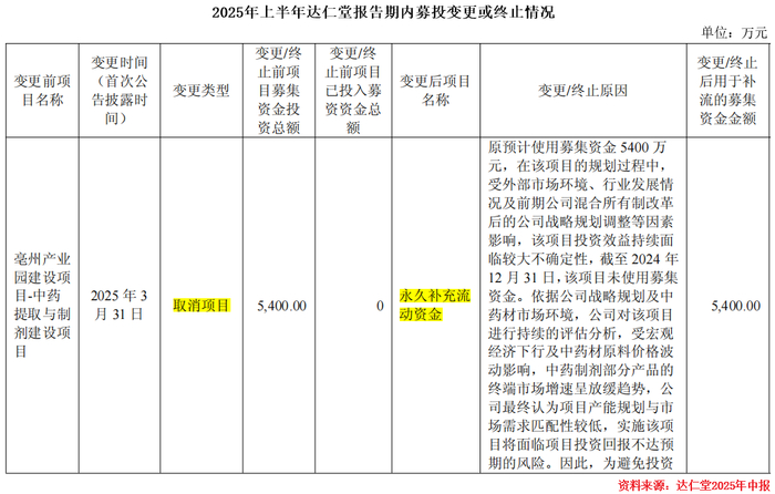 2025年上半年,达仁堂还终止了0.54亿元的亳州产业园项目,回笼资金补流。未来,公司若能审时度势、投入更多资金发展中成药业务,那其中成药业务也有望继续获得新动能。