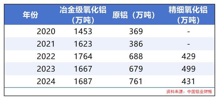 2024年,公司产冶金级氧化铝1687万吨,精细氧化铝431万吨,原铝761万吨,产能进一步提升。