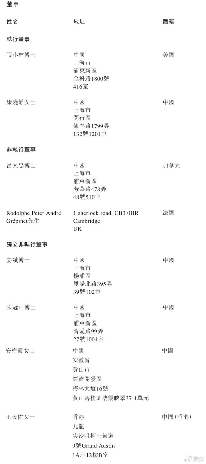 迪哲医药执行董事分别为张小林博士、康晓静女士;非执行董事分别为吕大忠博士、Rodolphe Peter André Grépinet,独立非执行董事分别为姜斌博士、朱冠山博士、安梅霞女士、王天佑女士。