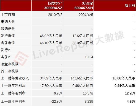 同行业IPO可比公司:国联水产、好当家
