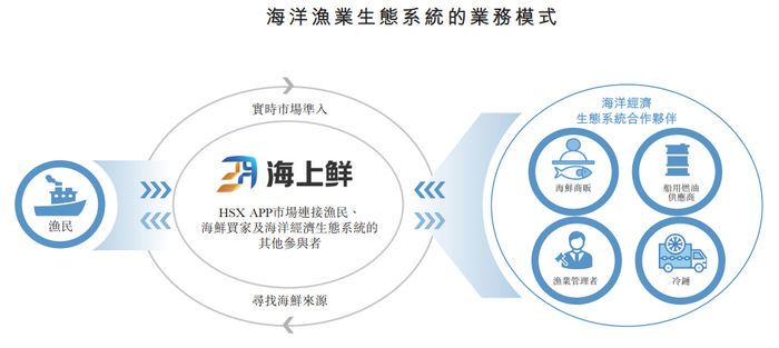 经过十多年的运营,公司的HSX APP已演变为以数据为驱动的数字B2B海洋渔业市场,涵盖了庞大的生态系统,包括渔民、海鲜加工商、海鲜商贩及鱼贩,截至2025年8月31日的注册用户超过50,000名。其现在主要为用户提供即时访问有用内容的功能,如海鲜市场趋势、捕获数据及海上天气状况等,同时亦作为我们应用程序及沿海洋渔业供应链从线上到线下服务的端口,包括海鲜B2B商务、船用燃油供应、冷链物流及其他辅助服务。