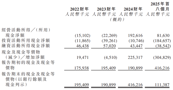 来源:招股书截至2025年8月31日,流动资产7.08亿元,流动负债1.93亿元,短期偿债能力稳健;经营活动现金流净额-0.82亿元,期末现金及等价物1.11亿元,可支撑日常运营及业务拓展。