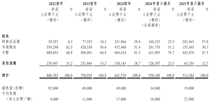 公司2024年营收10.06亿元,同比增长一成;2025年前八个月营收5.79亿元,同比有所下降。营收变动主要源于海鲜B2B商务结构调整,2024年阿根廷鱿鱼销量增长带动收入,2025年前八个月海鲜销量下降但高单价产品占比提升部分抵消影响。