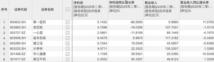进入2025年,行业整体表现更加疲软,多个企业的营收和利润持续下滑,长时间保持的高增长势头或面临终结。益丰药房、老百姓、一心堂、健之佳等公司均呈现负增长,特别是老百姓与一心堂的营收和净利润双双下滑,进一步加剧了市场对行业前景的担忧。