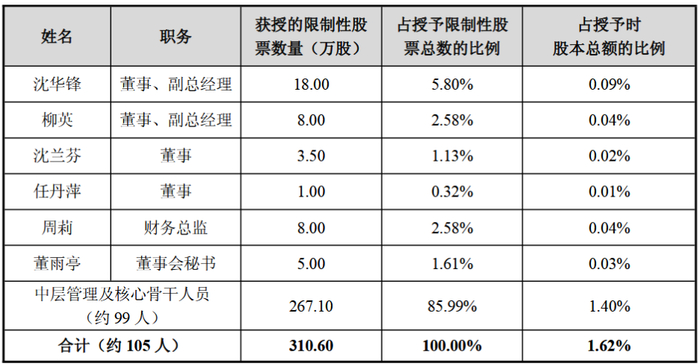 西大门(605155)发布公告,2025年限制性股票激励计划于2025年12月9日向105名激励对象授予311万股限制性股票,授予价格为8.27元/股。