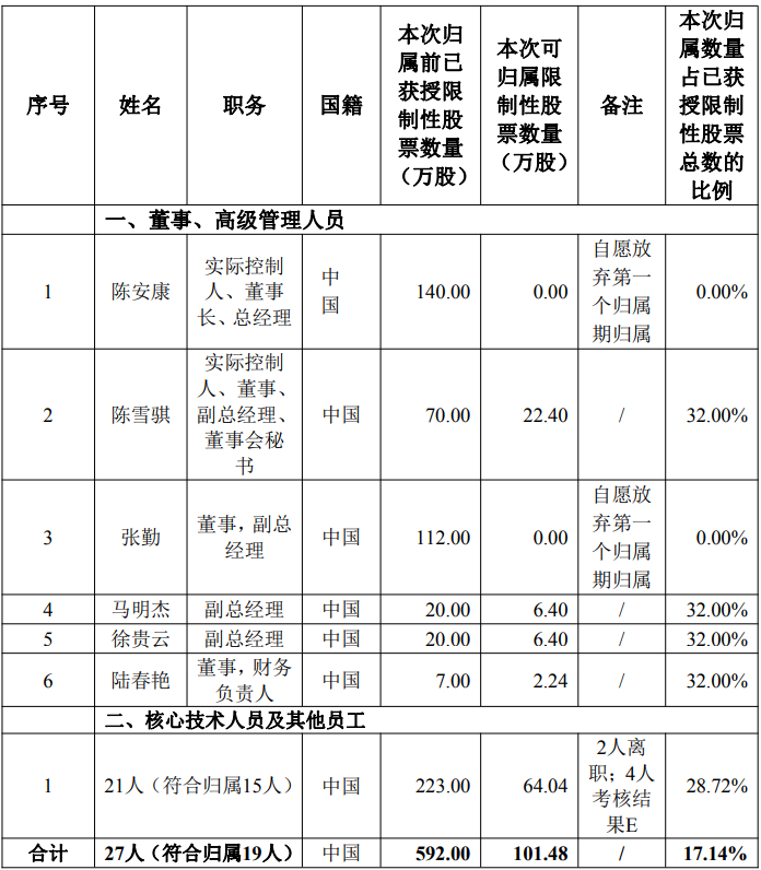 本次归属日定为2026年3月19日,符合归属条件的激励对象人数为19人,归属的第二类限制性股票数量为101万股,占公司股本总额的0.23%。本次限制性股票的上市流通日同样为2026年3月19日,且不设限售期。