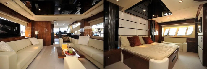 据说这还是当时全世界仅有的一艘Sunseeker108英尺特别版豪华游艇。