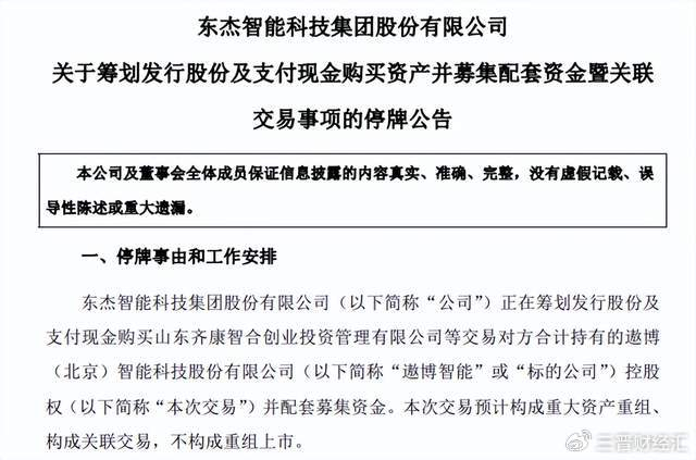 需要注意的是,东杰智能在公告中提示,此次交易目前仍处于筹划阶段,交易对方范围尚未最终确定。