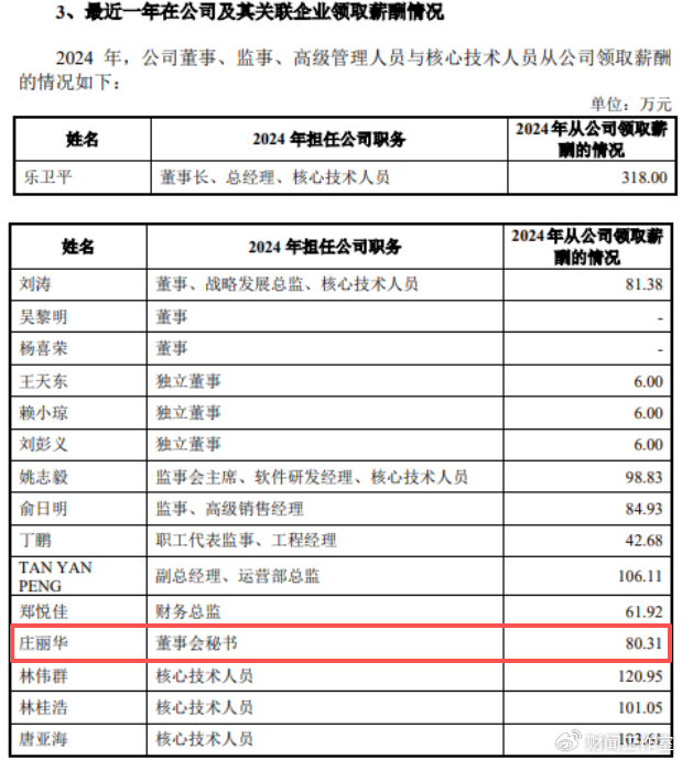 招股书显示, 庄丽华出生于1982 年出生,研究生学历。2007 年 6 月至 2009 年 10 月,任深圳市康哲药业有限公司投资者关系负责人;2009 年 12 月至 2011 年 3 月,任虎彩印艺股份有限公司证券事务代表;2011 年 4 月至 2017 年 5 月,历任深圳翰宇药业股份有限公司证券事务代表、证券管理部经理;2017 年 6 月至 2018 年 7 月,任民盛金科控股股份有限公司董事会秘书、董办总经理;2018 年 9 月至 2023 年 5 月,任深圳市科思科技股份有限公司董事会秘书;2023 年 5 月至今,任公司董事会秘书。