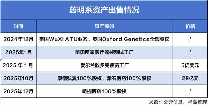 最近的一次就在12月3日。高瓴资本方面透露,已完成对药明康德旗下明捷医药的全资收购,这已是短短两个月内,药明康德第二次抛售资产。
