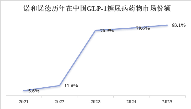 图2.诺和诺德2021-2025年在中国GLP-1糖尿病药物市场份额