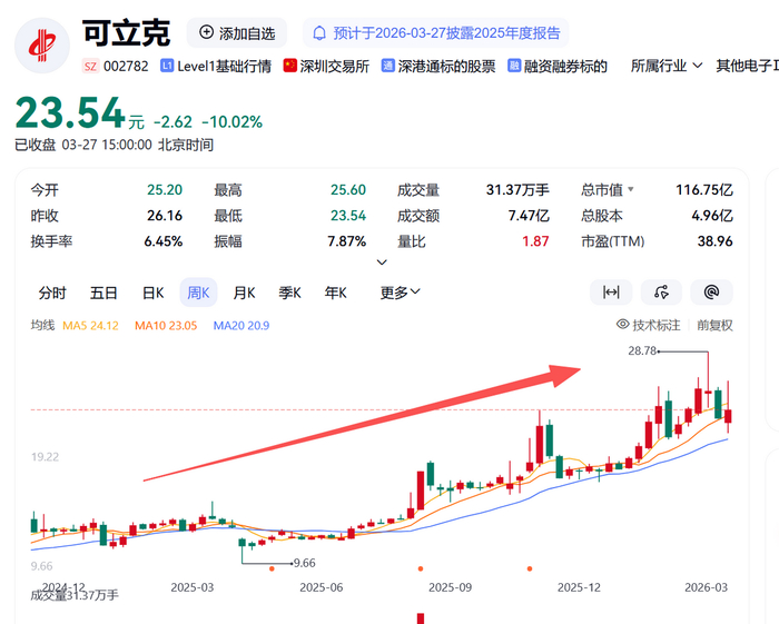 3月26日,可立克(002782.SZ)发布了2025年年报:营收55.32亿元,同比增长17.87%;归母净利润3.00亿元,同比增长30.18%。