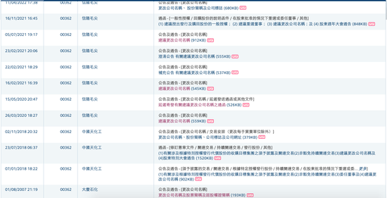 港交所官网显示,信阳毛尖多次发布更改名称公告