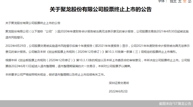 *ST聚龙则是由于被出具无法表示意见的审计报告而被终止上市。