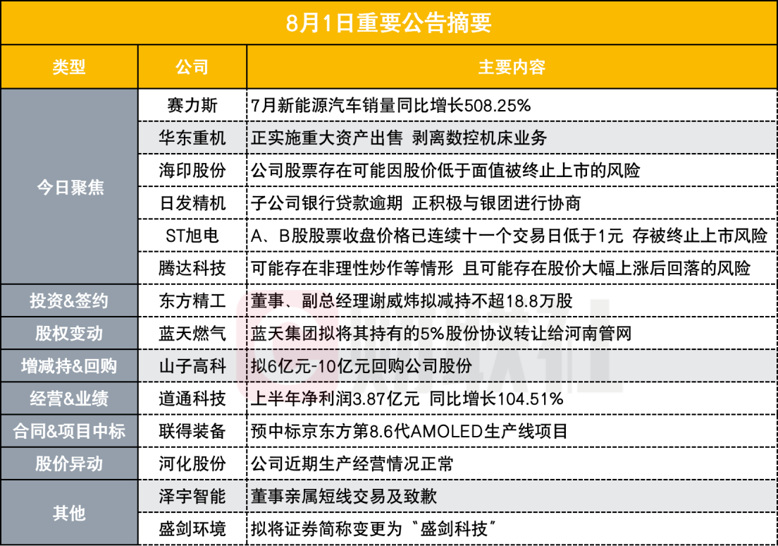 海印股份公告,截至8月1日,公司股票收盘价为0.77元/股,已连续18个交易日低于1元。公司股票存在可能因股价低于面值被终止上市的风险。