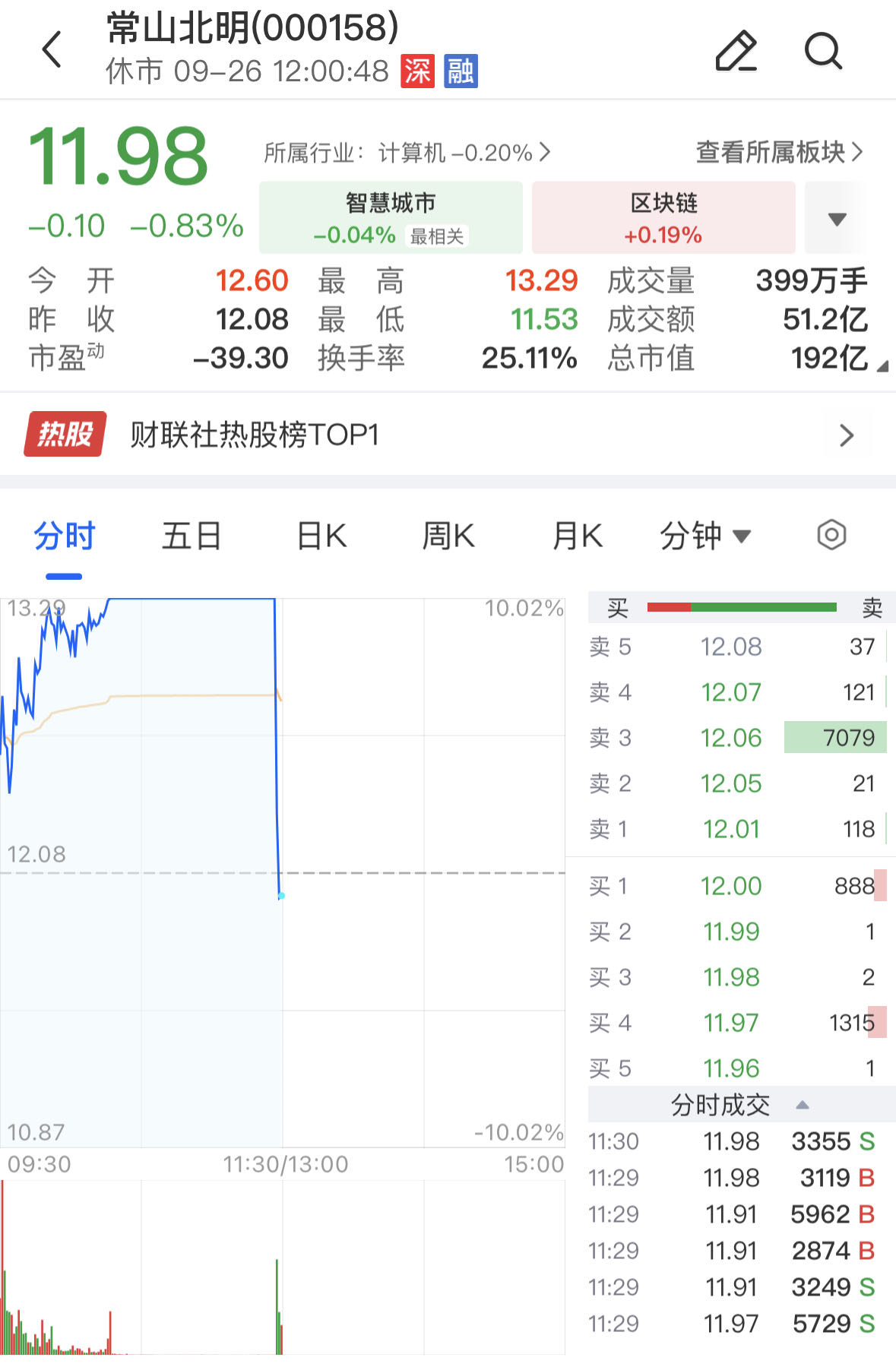 个股来看,今日早盘共50只个股涨停(不包括ST及未开板新股),封板率为83%,连板股为15家,重组概念股双成药业10连板,网络安全概念股海能达6连板,中南股份、亚泰集团、恒银科技均成功晋级4连板。阳光股份、天风证券、五矿资本、中粮资本、永辉超市3连板。不过需要注意的是临近午间收盘,常山北明、银之杰、宝塔实业、法本信息等高位人气股遭遇突发跳水。