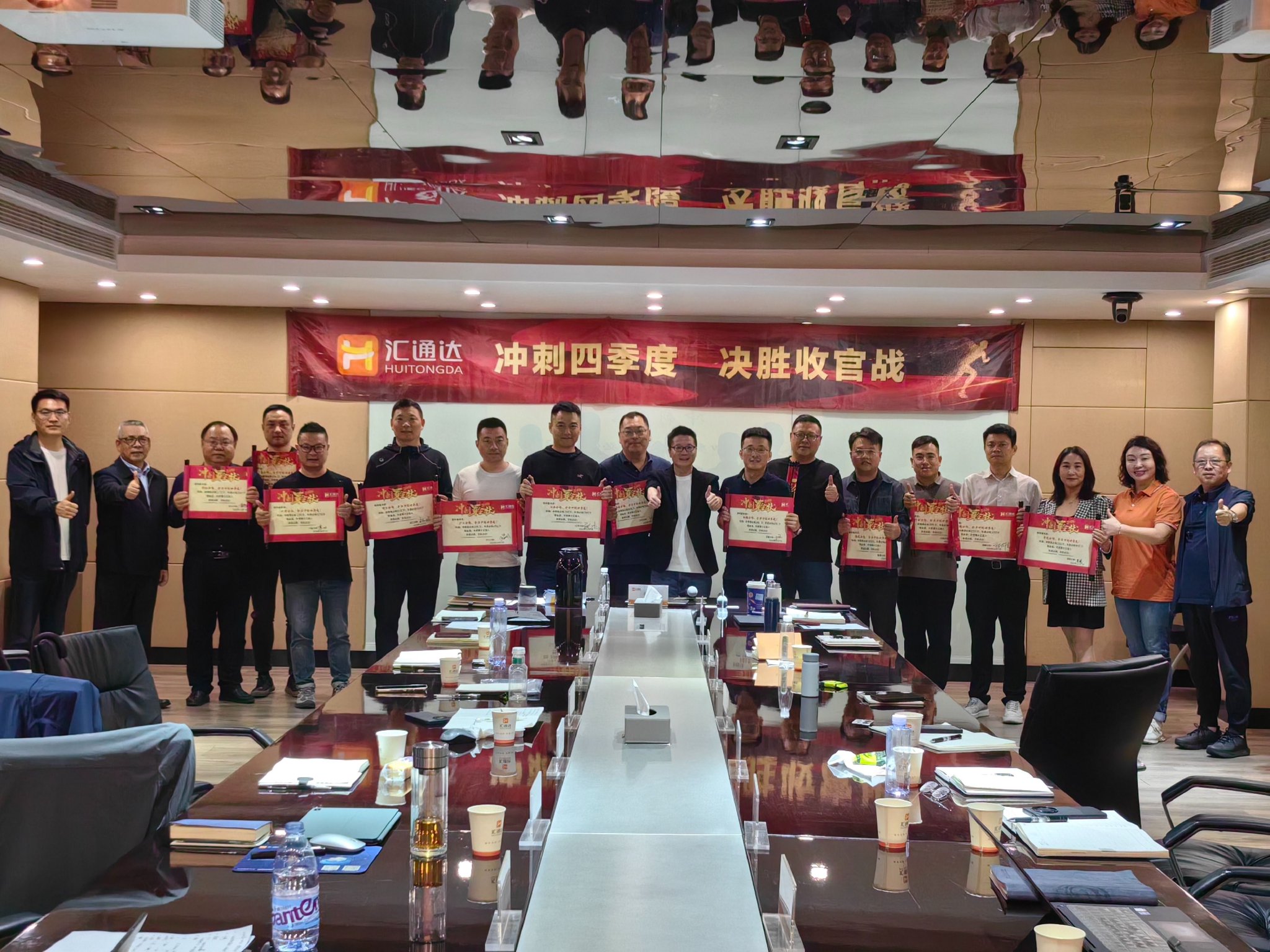 10月6日,仍是国庆假期,汇通达已经迫不及待召开10月总部办公会议,一方面就9月份和三季度经营情况进行深度复盘分析,另一方面各部门签署四季度目标必保责任状。在会议现场,“冲刺四季度、决胜收官战”的横幅分外显眼。