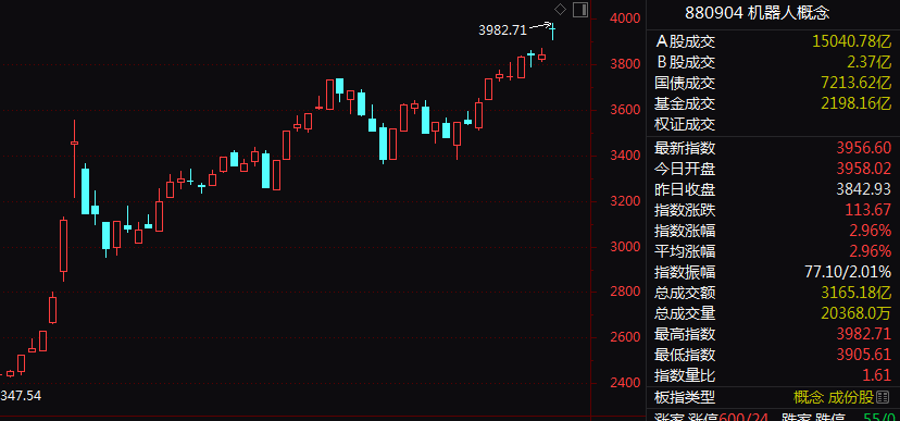 人形机器人概念近来炙手可热,板块指数连续刷新历史纪录,今日早间盘中再度放量大涨近7%,再创历史新高。中研股份连续2日20%涨停,奋达科技7日5涨停,柯力传感4日3涨停。