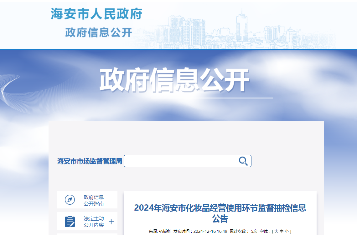 2024年海安市化妆品经营使用环节监督抽检信息公告