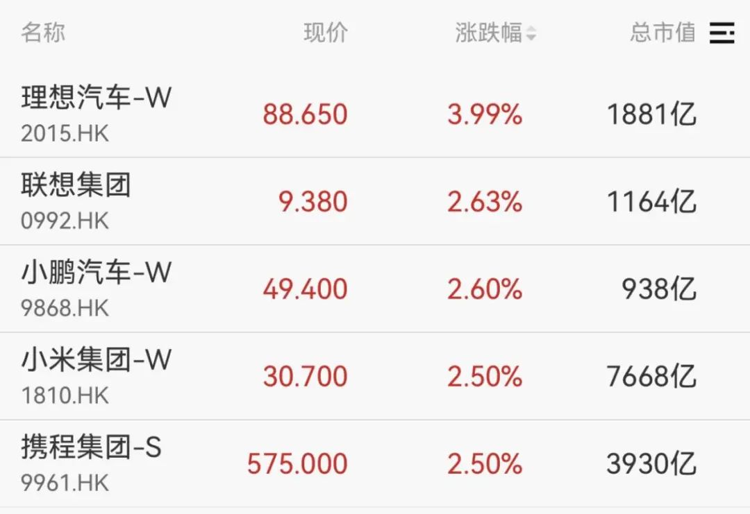 港股方面,恒生科技指数涨超1%,理想汽车、联想集团、小鹏汽车等涨超2%。