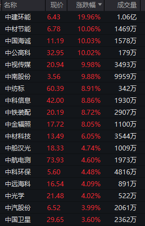 中字头央企指数大涨,中建环能20CM涨停,中材节能、中公高科、中国海诚等多股涨停。