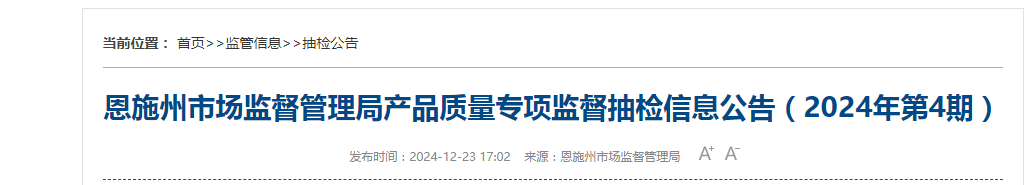 恩施州市场监督管理局产品质量专项监督抽检信息公告(2024年第4期)