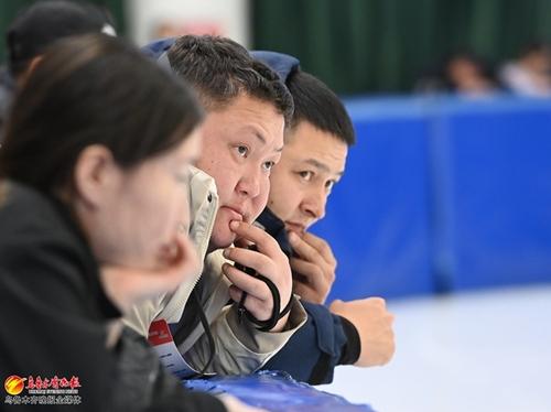 12月30日,在新疆冬季运动训练中心短道速滑馆,带队参加新疆维吾尔自治区第二届冬季运动会“八一钢铁杯”短道速滑比赛教练密切关注运动员的比赛状态。记者陈岩摄