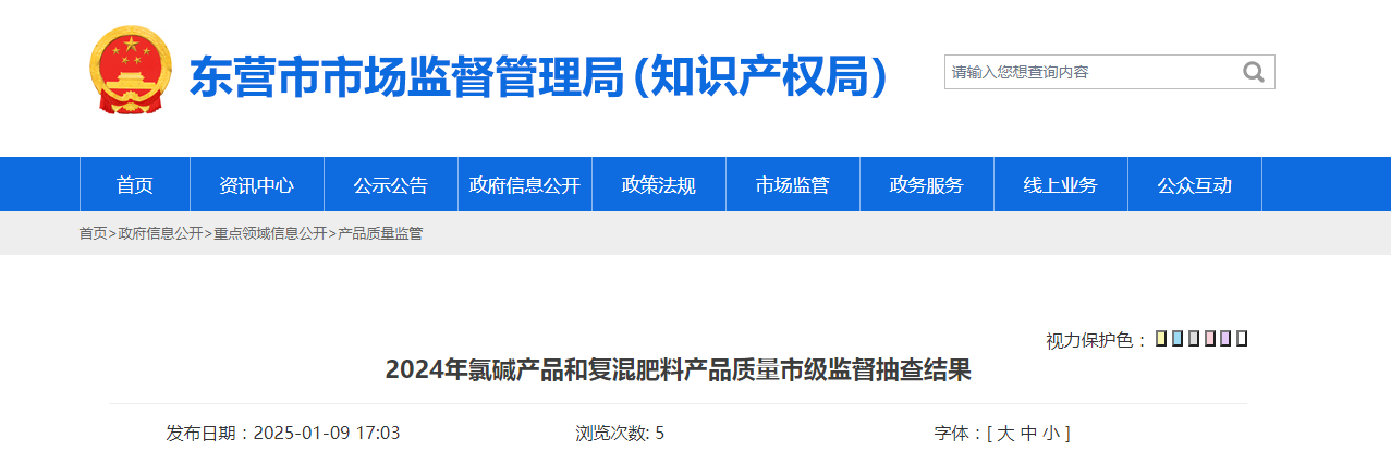 中国质量新闻网讯 近日,山东省东营市市场监管局网站公布2024年氯碱产品和复混肥料产品质量市级监督抽查结果。以下为原文: