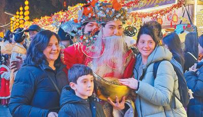 春节期间,外国游客在成都东门码头体验春节文化。宋豪新 唐斌治摄影报道