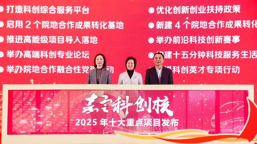 会上,“嘉定科创核”2025年十大项目发布,内容包括打造科创综合服务平台、优化创新创业扶持政策、启用 2个院地合作成果转化基地、新建4个院地合作成果转化基地、推进高能级项目导入落地、举办前沿科技创新赛事、举办高端科创专业论坛、构建十五分钟科技服务生活圈、举办院地合作融合性党建活动、推进科创英才专项行动。上海智慧城市发展研究院等七家机构、高校签约成为“嘉定科创核”首批合作伙伴。