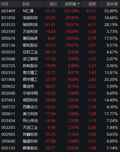 汽车零部件板块走强,浩淼科技30CM涨停,万安科技、襄阳轴承、银轮股份等多股直线拉涨停。