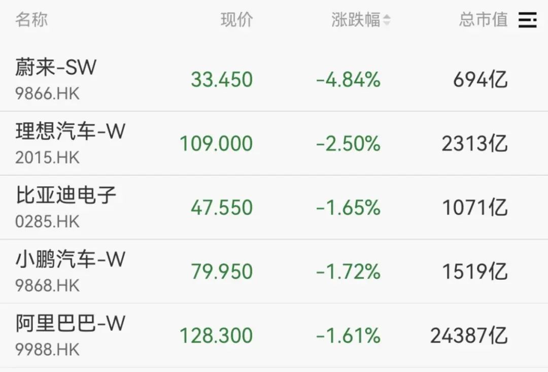 港股方面,三大指数低开后震荡拉升,港股汽车股多数走低,蔚来、理想汽车、小鹏汽车跌幅居前。
