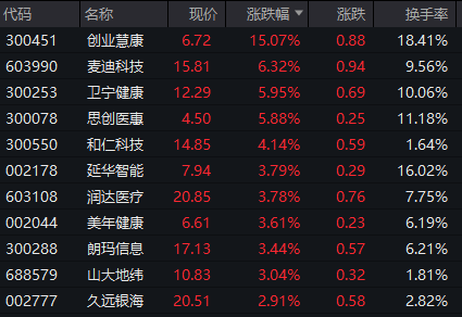 AI医疗概念反复活跃,贝瑞基因实现2连板,创业慧康涨超15%,麦迪科技、卫宁健康、思创医惠涨超5%。