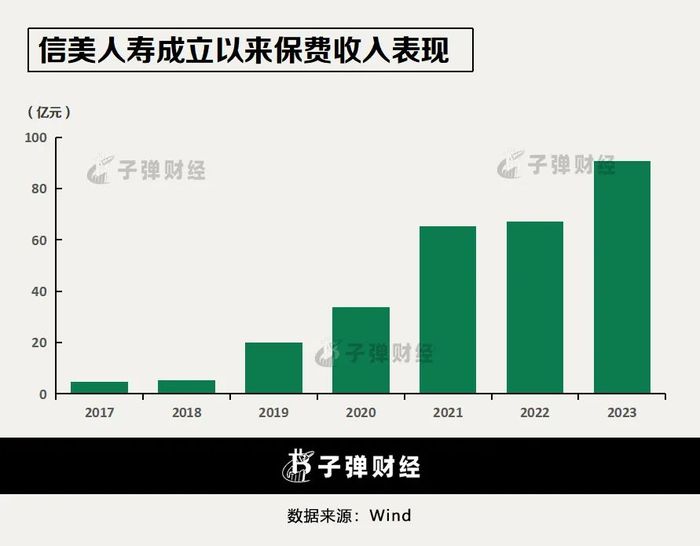 在过去7年发展历程中,信美人寿的保费呈现波动上扬态势。