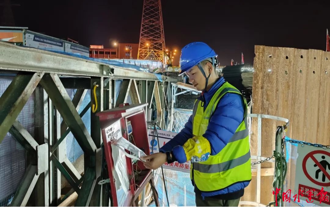 在“与汛期赛跑”的冲刺阶段,安全管控始终被摆在首位。深基坑作业区全线加装1.2m特质柔性围栏,11处安全爬梯装备特种防坠器;所有起吊作业严格执行“三查三验”制度,特种设备操作员持双证上岗;夜间施工现场架设的20盏防爆探照灯将作业面照得亮如白昼,工人反光背心上的贝雷桥边的LED警示灯连成一片“星海”。安全副经理蒋悦的巡查背包里永远装着三样东西:卷尺、隐患整改单和急救包。“每个基坑临边防护必须经我亲手测量,防护栏与坑壁距离超过50cm的一律返工!”他坚定地说。