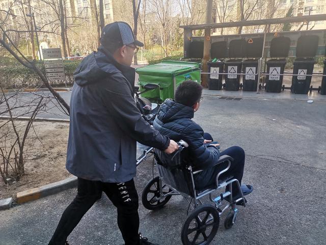 “他平时和母亲生活在一起,没有特殊情况也不会麻烦咱们社区。”挂下电话后,马凤静立即向社区书记周太行说明了情况,随后俩人和社工张晨蕊、张永鑫一起赶到杜先生家。经与杜先生商量,周太行决定让社区工作人员兵分两路行动:张永鑫护送杜先生打车去双桥医院,办理转院手续,马凤静和张晨蕊负责给杜先生的母亲送饭。“您坐好了,咱这就走。”张永鑫把杜先生扶上轮椅、推下楼、送上车,两人一起赶往双桥医院办理转院结算手续。马凤静和张晨蕊临近中午时赶到朝阳医院东院区,将杜先生点的外卖送给老人。