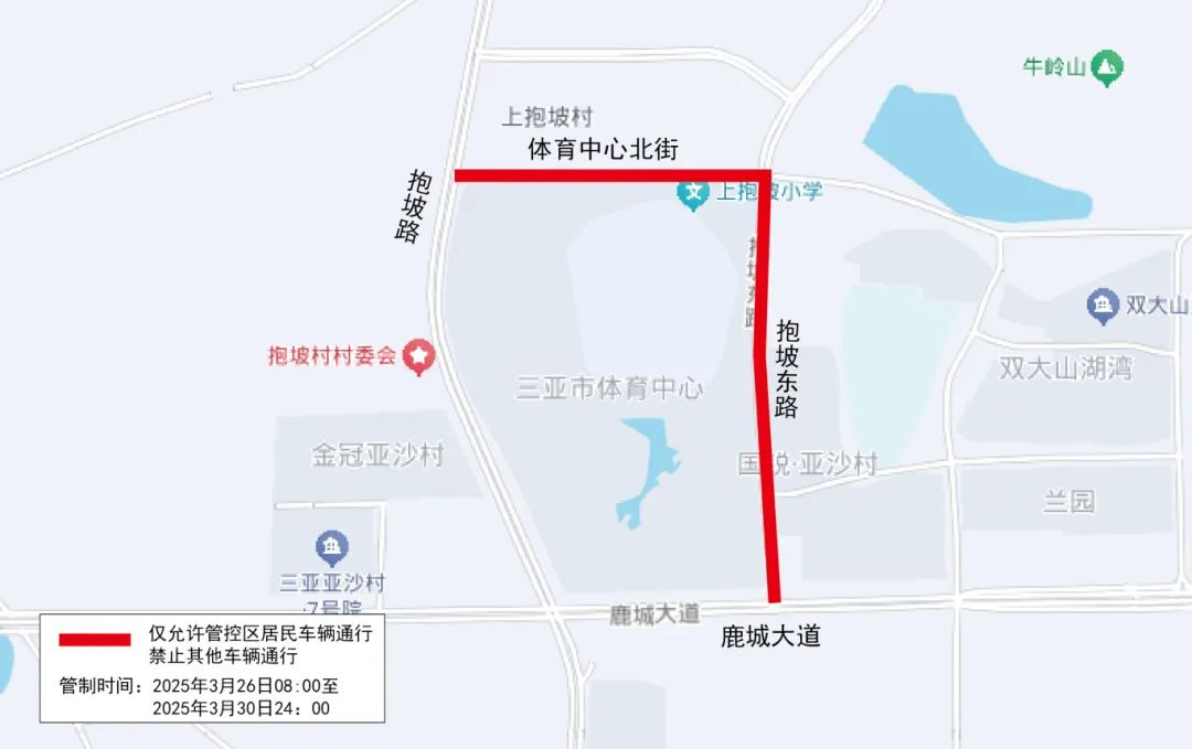 管制措施:仅允许管控区域居民(国锐亚沙村业主)车辆通行,且需服从现场交警指挥,禁止其他车辆通行。