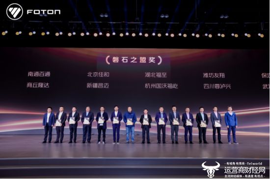 一季度,福田汽车取得的成绩离不开广大合作伙伴的精诚合作与支持。为表彰先进,福田汽车常务副总经理鹿政华主持颁奖仪式,向优秀经销商代表分别颁发了引擎新星奖、磐石之盟奖、星火先锋奖,这些奖项不仅是福田汽车对合作伙伴往昔卓越贡献的诚挚褒奖,更是福田汽车对双方未来继续携手共进、开拓创新,在激烈市场竞争中缔造更多辉煌的深切期许。