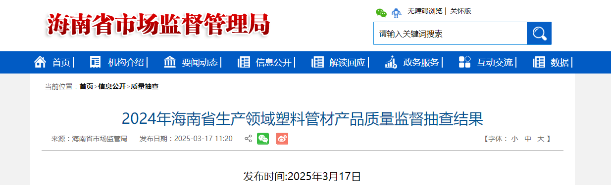 中国质量新闻网讯 近日,2024年海南省生产领域塑料管材产品质量监督抽查结果发布。