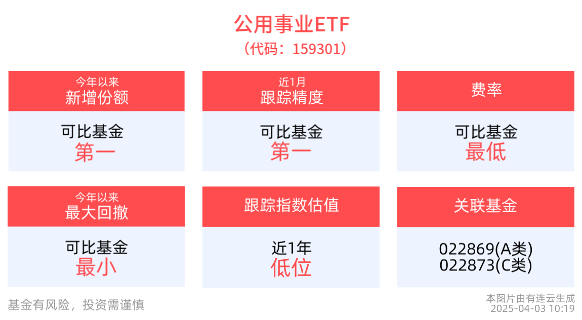 公用事业ETF(159301),场外联接(华夏中证全指公用事业ETF发起式联接A:022869;华夏中证全指公用事业ETF发起式联接C:022873)。