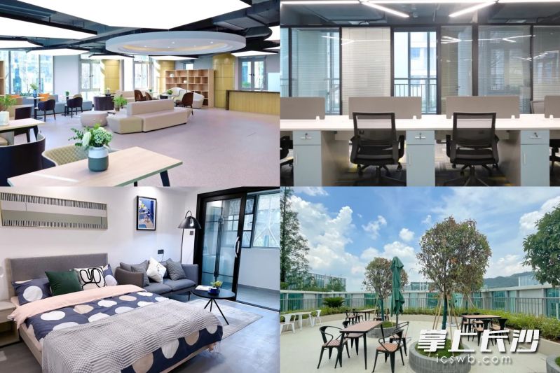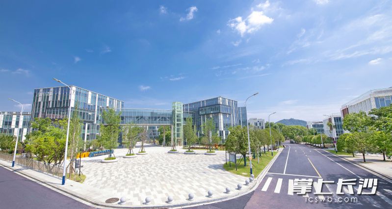 走进湘江科创基地,一幅兼具智慧化与生态化的园区图景展现在眼前。人才公寓、共享会议中心、健身房、食堂等配套设施一应俱全,崭新明亮的玻璃幕墙办公楼在阳光下显得格外耀眼。