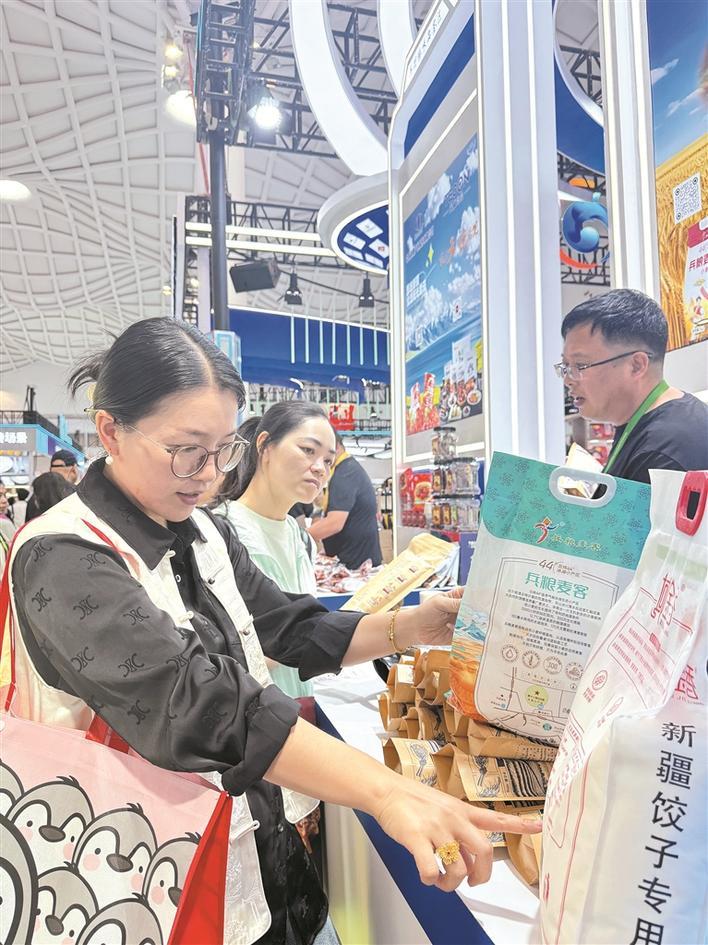 4月14日,参展嘉宾和观众在兵团展馆“一站式”邂逅兵团好物。兵团日报全媒体记者 谌慧 赵优 摄