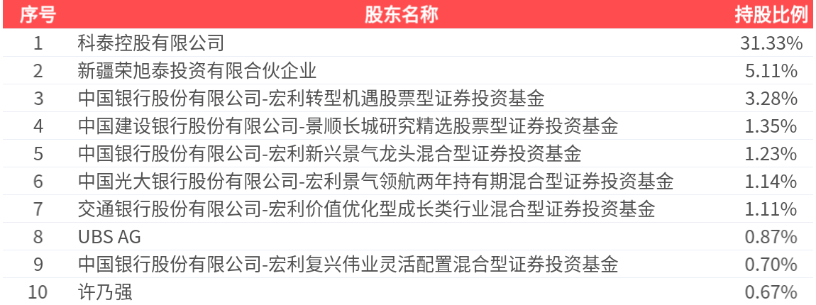 公司股东户数为4.25万户,前十大股东持股数量为1.50亿股,占总股本比例为46.77%,前十大股东持股情况如下: