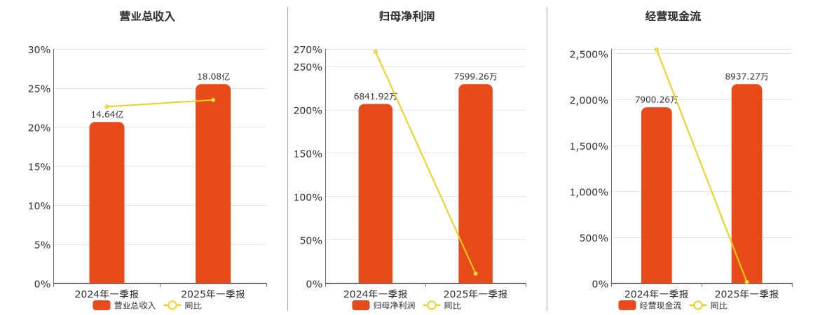 公司营业总收入为18.08亿元。归母净利润为7599.26万元。经营活动现金净流入为8937.27万元。