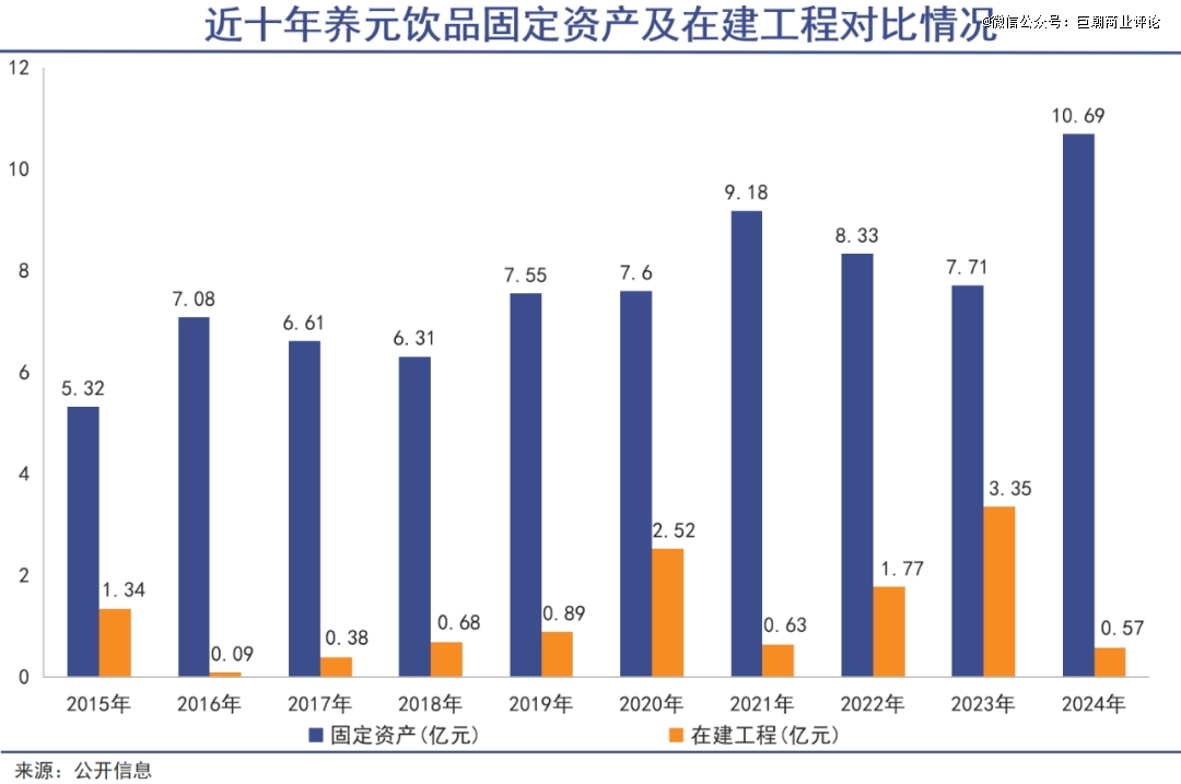 而与之对应的,十年来养元饮品的固定资产仅从5.32亿元,增长至10.69亿元。在建工程更是多年来不超过1亿元。