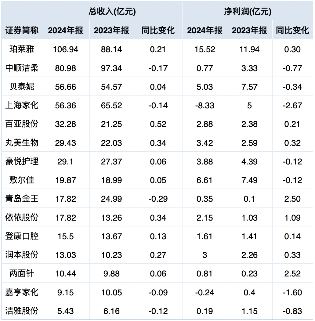 截至4月27日晚间,已有15家A股化妆品类上市公司发布了2024年业绩,合计实现营业收入500.81亿元,同比增长3.59%;合计实现净利润37.65亿元,较上年同期的51.27亿元大幅下降。