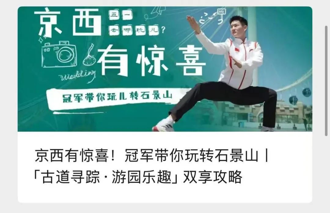 冠军视角,自带流量和影响力。推出“京西有惊喜----冠军带你玩转石景山”系列短视频。邀请了刘洋、曾春蕾、张清淳、佟健四位具有广泛影响力的冠军进行打卡,推出精品视频4期,在北京石景山、今日石景山微信视频号首发后,向人民日报、央广网、北京日报、北京电视台、学习强国、团市委公号、北青报、新京报、抖音、快手、微博等多家外宣平台供稿,形成“区媒首发,全网联动”的矩阵传播,相关话题总播放量突破5000余万次。