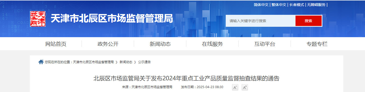 中国质量新闻网讯 近日,天津市北辰区市场监管局发布2024年重点工业产品质量监督抽查结果。其中,水泥、钢筋、化肥等10种产品经检验发现,65批次产品均合格。