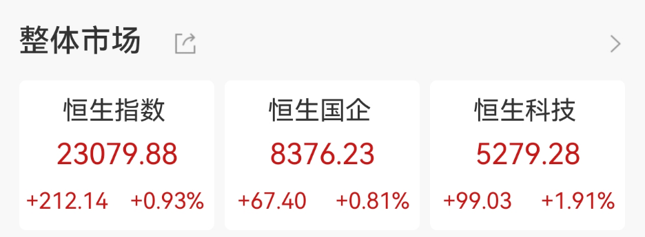港股市场上午持续震荡。截至午间收盘,恒生指数涨0.93%,恒生科技指数涨1.91%,恒生国企指数涨0.81%。