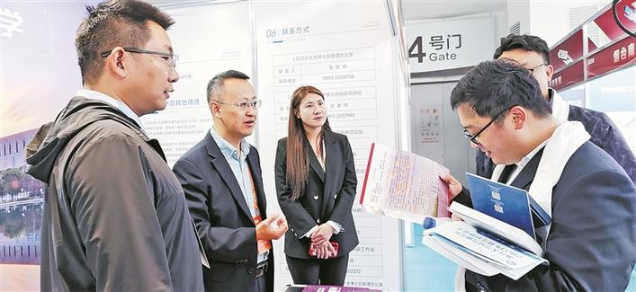 在第二届全国博士后创新创业大赛招聘活动现场,兵团博士后设站单位工作人员向咨询者介绍兵团高层次人才引进政策(资料图片)。近年来,兵团深入实施人才强兵团战略,聚焦“引、育、留、用、服”全链条,建设新时代博士后队伍,并在住房、就医、配偶就业、子女就学等方面,为博士后人才提供一揽子支持和便利化服务。 兵团日报全媒体记者 马燕 摄